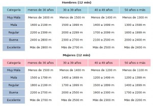 En 1968, Keneth Cooper diseñó un conjunto de tablas para el ejército de los Estados Unidos para poder conocer de forma rápida el estado de forma física de los soldados. Con el tiempo, el Test de Cooper se ha convertido en todo un estándar que se aplica en prácticamente todos los ámbitos deportivos. El test consiste en correr 12 minutos y dependiendo de la distancia que seamos capaces de cubrir podremos evaluar nuestro estado de forma de acuerdo a la tabla que hay un poco más abajo.